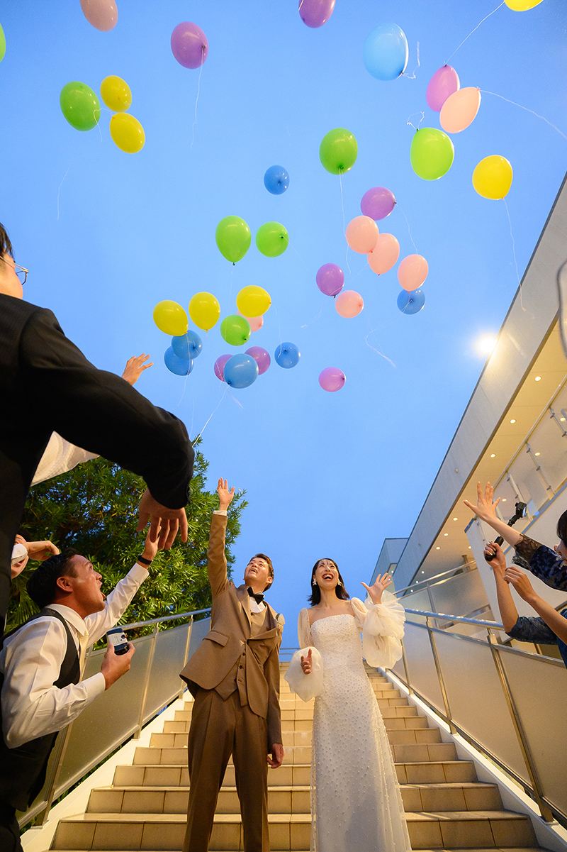 おふたりの後ろに沢山のバルーンが空へ放ちます!