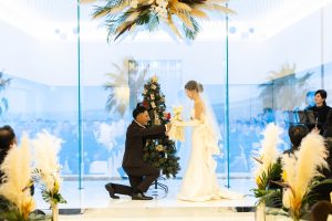 白のバラを持ってゆりなさんの元へと歩まれ
